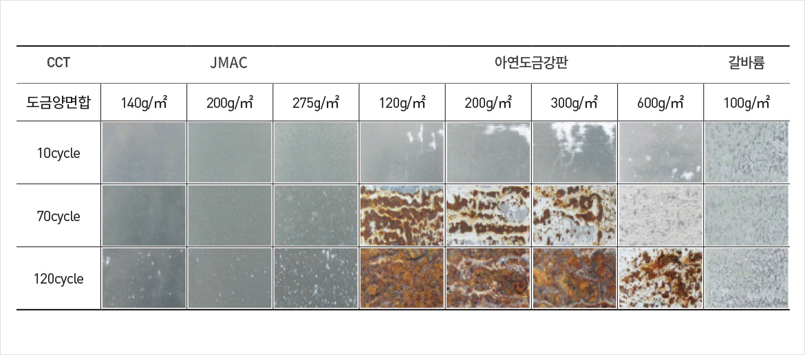 JMACÀº ¾Æ¿¬µµ±Ý°ÆÇ º¸´Ù 5-10¹è ÀÌ»ó ¿ì¼öÇÑ ÆòÆÇºÎ ³»½Ä¼ºÀ» ³ªÅ¸³»¸ç, °¥¹Ù·ý ´ëºñ µ¿µî ÀÌ»óÀÇ ¿ì¼öÇÑ ÆòÆÇºÎ ³»½Ä¼ºÀ» ³ªÅ¸³À´Ï´Ù.